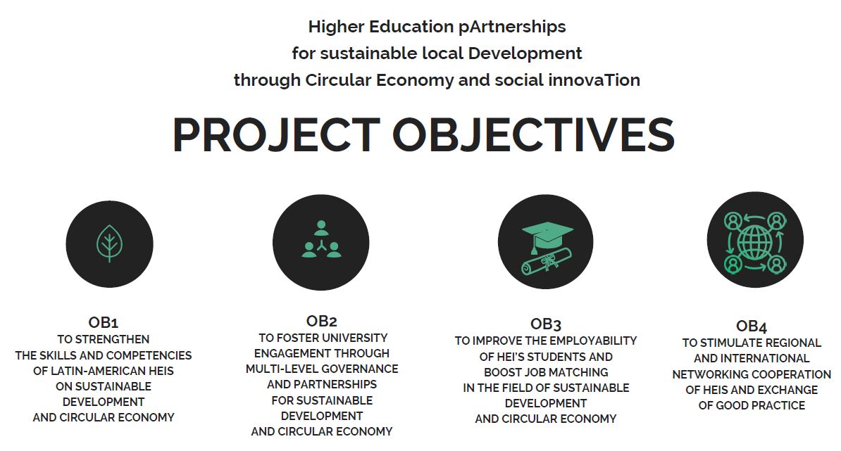 HEADCET tiene como objetivo apoyar a las Instituciones de Educación Superior (IES) de Argentina, Paraguay y Chile para enfrentar los desafíos vinculados al desarrollo sostenible aumentando su relevancia en los mercados laborales y la sociedad en general. El proyecto se enfoca específicamente en la Economía Circular (CE) y la Innovación Social (SI) que se consideran cruciales para fomentar un crecimiento más sostenible e identificar nuevas oportunidades de empleo. El proyecto ha obtenido una financiación de aprox. 700.000 euro y tiene una duración de 36 meses (2023-2025).